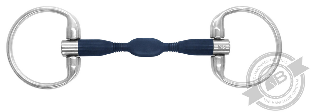 The cylindrical sides are slightly ribbed, to flex onto the bars (the interdental area) at the bottom of the horse’s jaw.